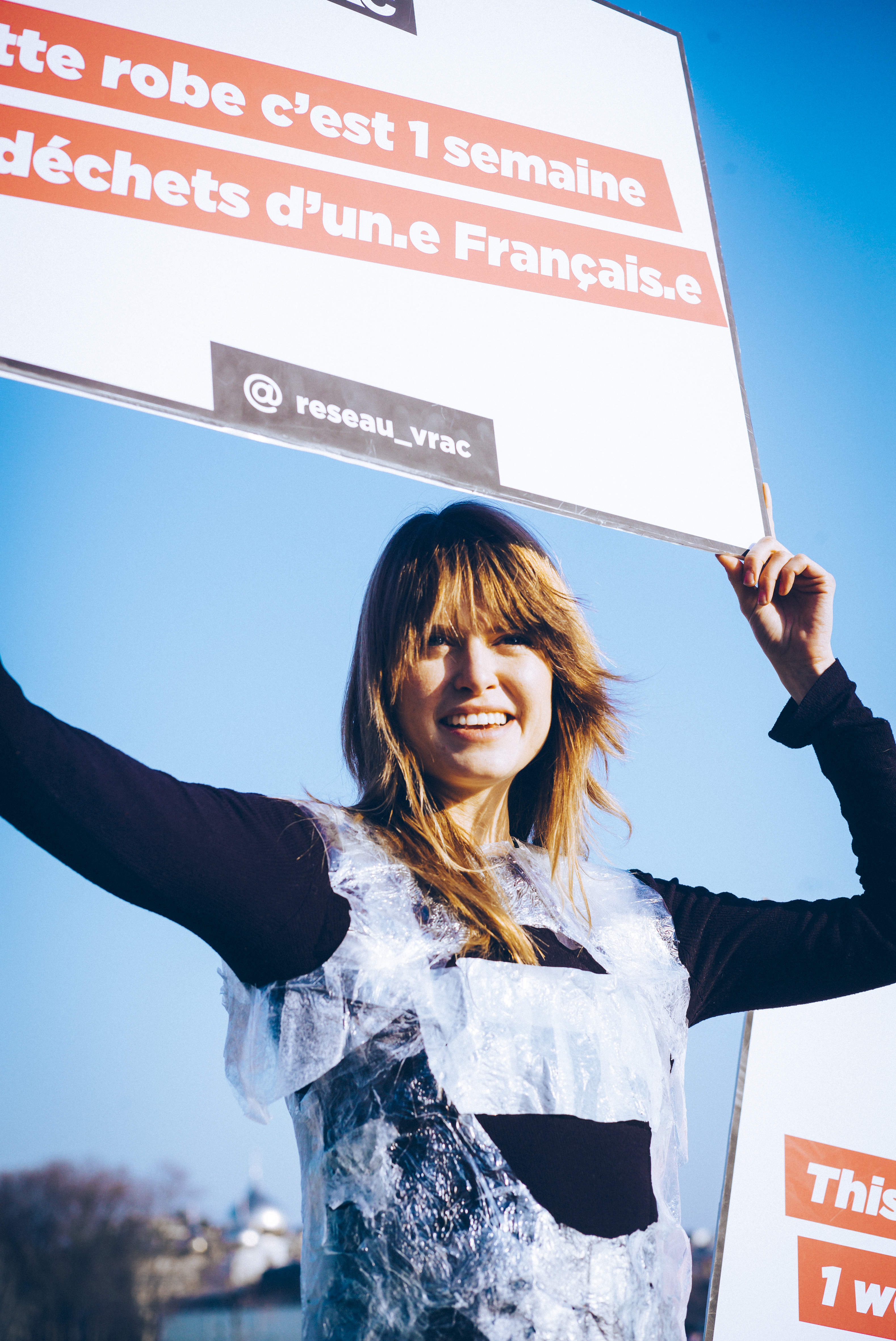 Un événement de lancement inédit à la Fashion Week de Paris en défilant dans une robe réalisée avec les déchets plastiques produits en moyenne chaque semaine par un Français