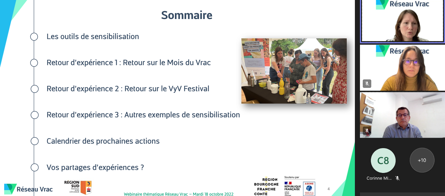 L’objectif du webinaire était donc de partager ces retours d’expérience (ressources nécessaires, temps à mobiliser, discours à véhiculer, animations adaptées aux publics …) et d’inspirer les participants sur différents types de formats où la sensibilisation vrac peut s’appliquer comme :