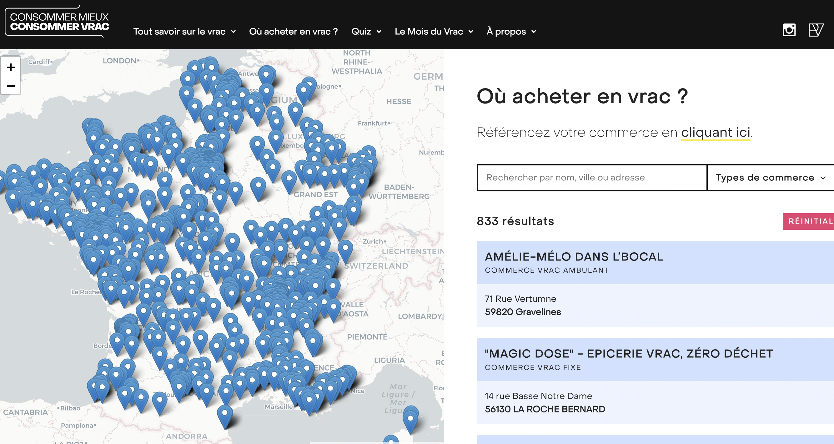 Nous avions mis en avant des visuels avec des QR répertoriant où les produits de nos fournisseurs étaient trouvables et également la cartographie des commerces vrac de notre site internet consommervrac.fr, avec un focus sur la région BFC.