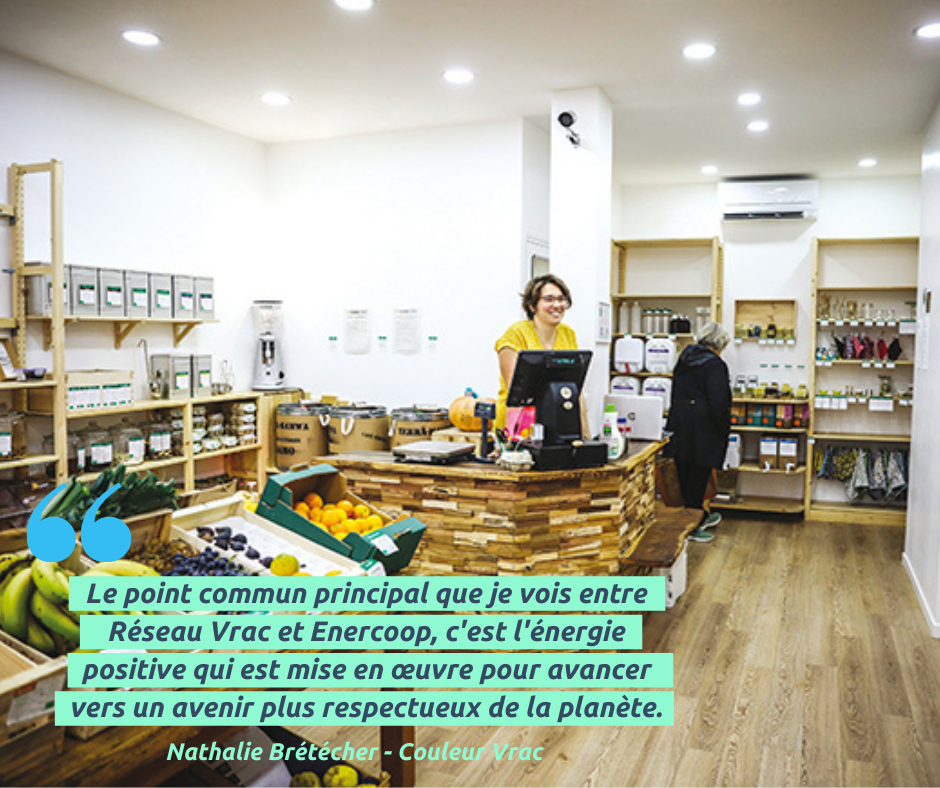 Le point commun principal que je vois entre Réseau Vrac et Enercoop, c’est l’énergie positive qui est mise en œuvre pour avancer vers un avenir plus respectueux de la planète. Des actions concrètes qui donnent des solutions pour agir !