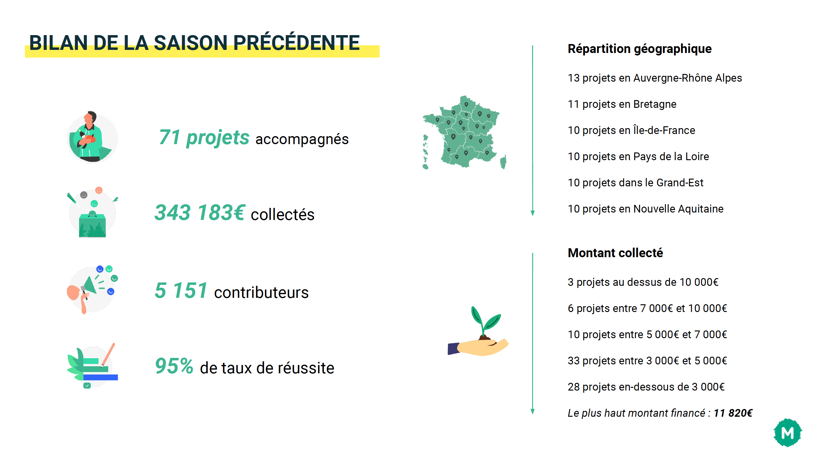 Les critères de sélection ont été la présentation du projet, l’impact de ce dernier sur son territoire, la capacité à fédérer une communauté, le besoin de financement, ainsi que la dimension innovante du projet.