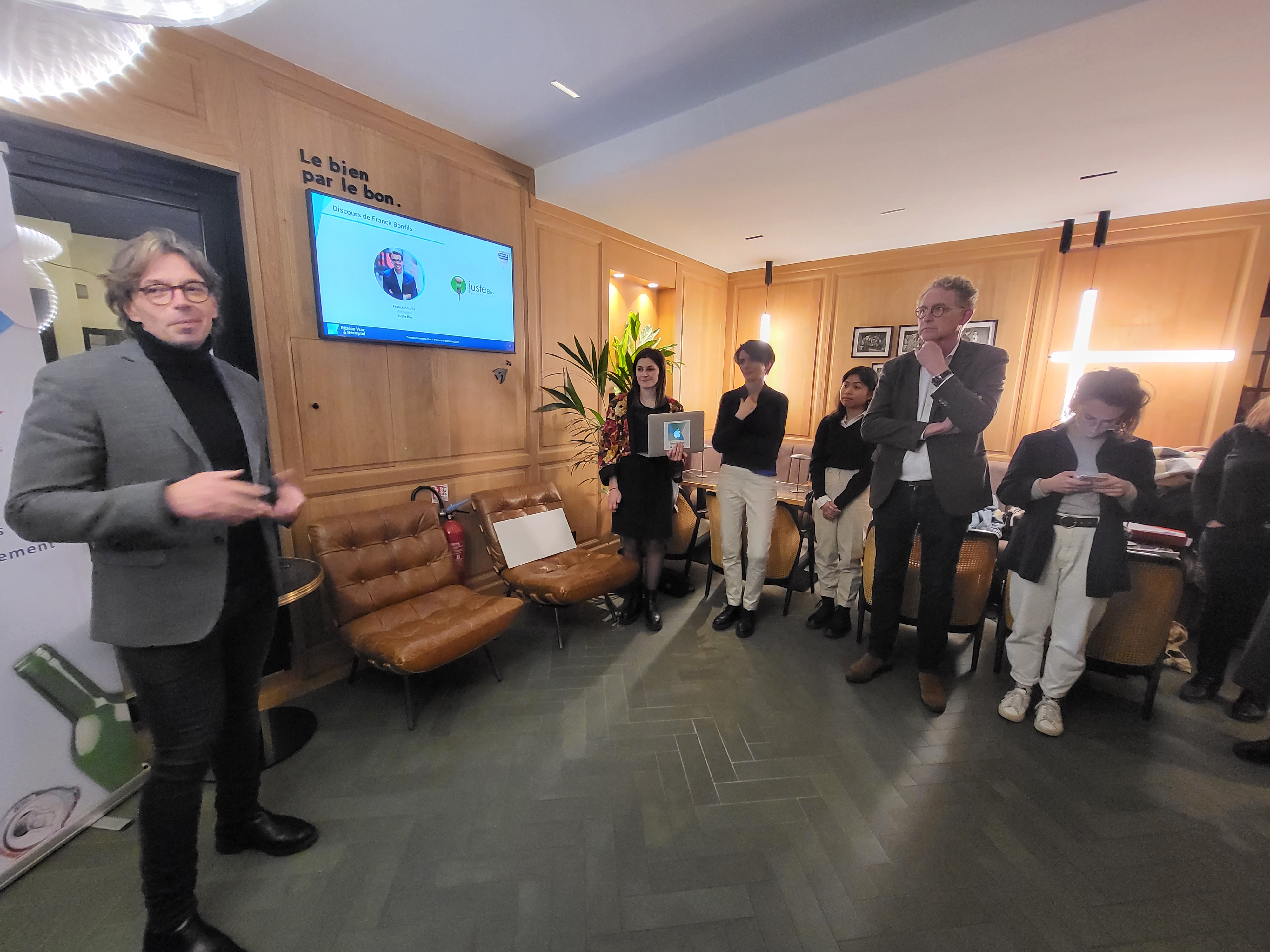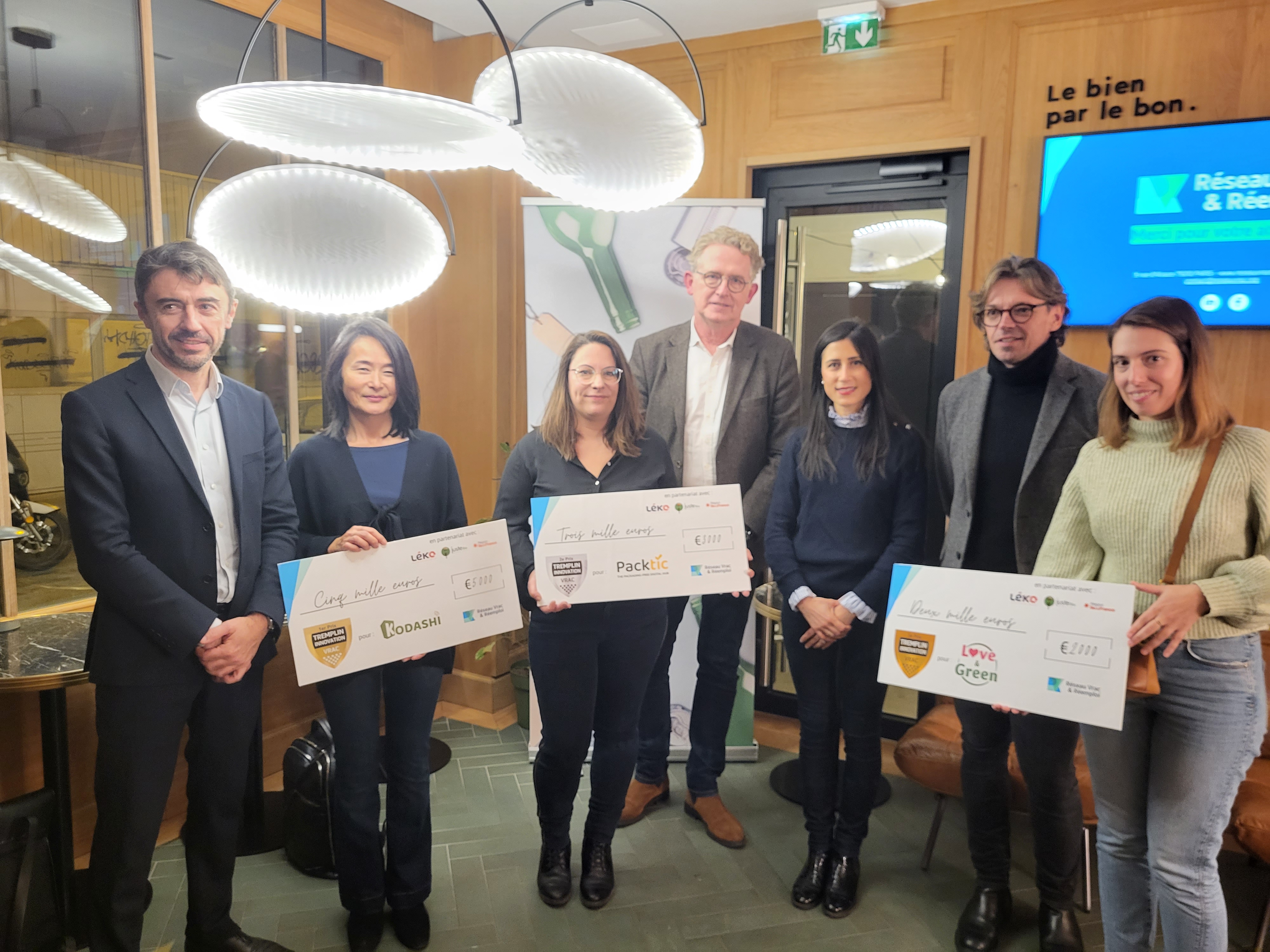 La révélation des gagnants a été faite lors de la cérémonie de clôture du 6 décembre au Bar Oé. Franck Bonfils (Président de Juste Bio), Patrick Bariol (DG de Leko) et Yann Wehrling (VP de la Région Ile-de-France à la transition écologique, au climat, la biodiversité et l’économie circulaire) ont dévoilés le nom des 3 lauréats :