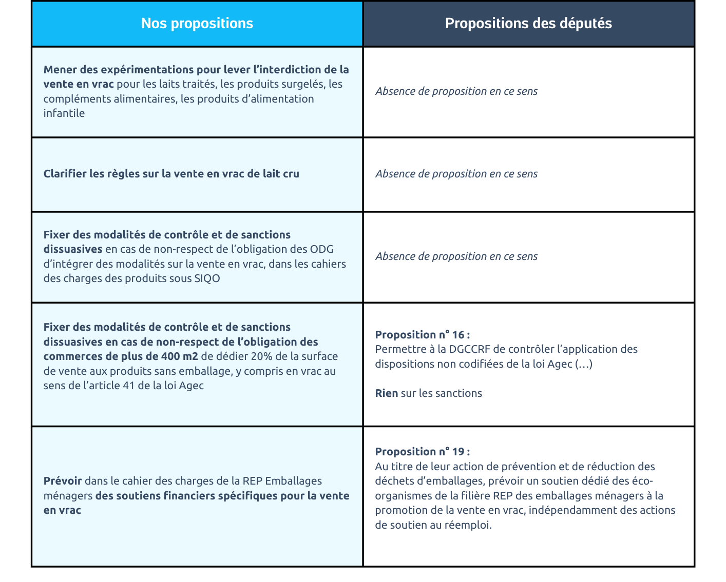Réseau Vrac et Réemploi est globalement alignée sur les constats formulés dans le rapport ainsi que sur les propositions des députés, en particulier celles relatives à la nécessité de mettre en place des contrôles et des sanctions dissuasives en cas de non-respect des obligations de réemploi, qu’elles soient imposées directement aux producteurs, ou indirectement par l’intermédiaire de leur éco-organisme.