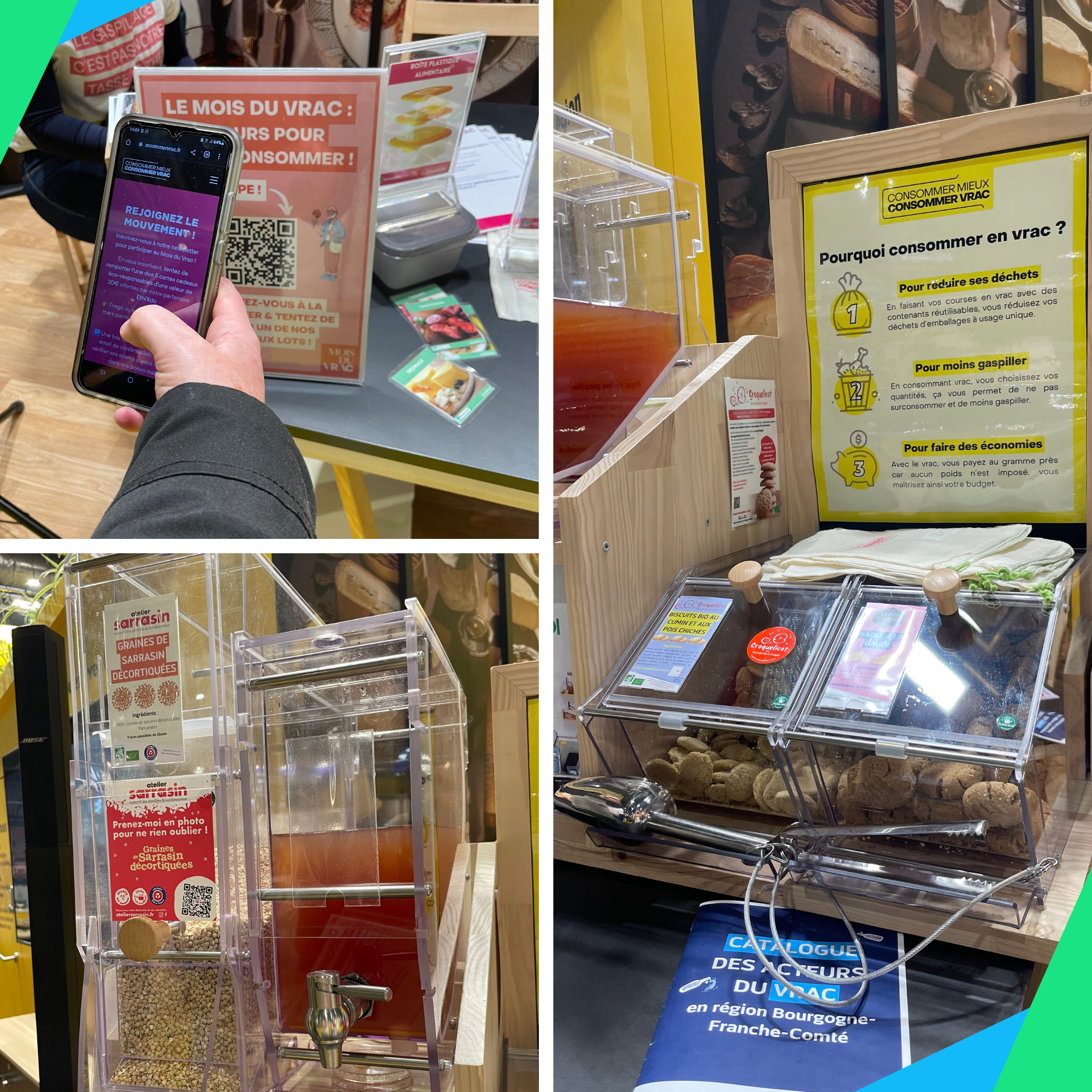 En faisant découvrir la diversité des produits régionaux disponibles en vrac en Bourgogne-Franche-Comté (comme la sauce soja, les légumineuses comme le quinoa, les graines de sarrasins ou encore la moutarde), nous avons présenté le vrac comme une réponse à de nombreux enjeux actuels :